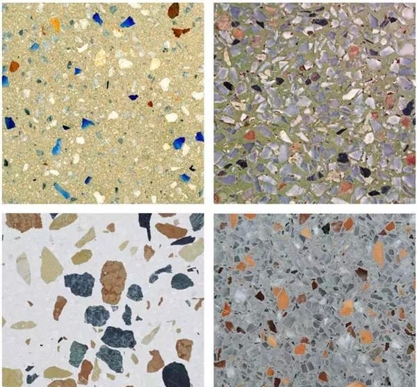水磨石(也称磨石)是将碎石、玻璃、石英石等骨料拌入水泥粘接料制成混凝制品后经表面研磨、抛光的制品。这么抽象的说明你肯定想不起它的样子,一张图就可以唤醒你暴露年龄的记忆哦……