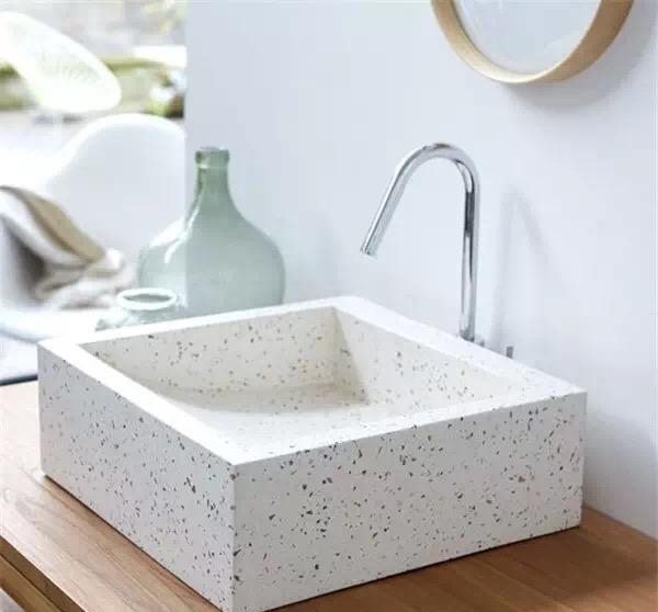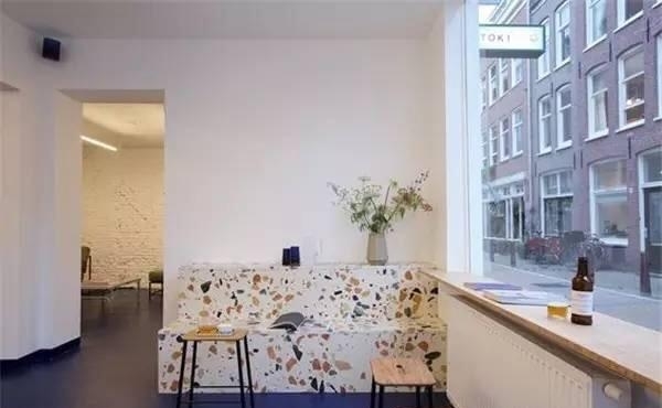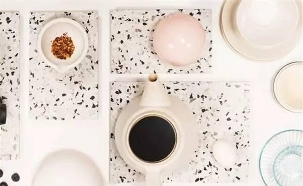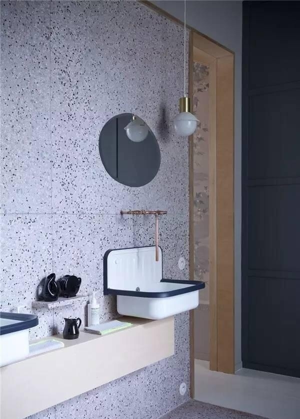 很眼熟吧?没错!你印象里曾经学校、医院楼道的标配,另外还有传统建筑的外墙面……都是水磨石。是不是感觉这都已经是一个世纪前的产物了?其实水磨石是相当耐磨耐用的,只是略显廉价。好在如此有内涵的材质,在设计师的脑洞里又焕发了新生。如同之前火爆的水泥和大理石一样,从桌椅、水槽到小物件,有些虽然只是用了水磨石的颜色和纹理,但其成为家装爆品已是必然。